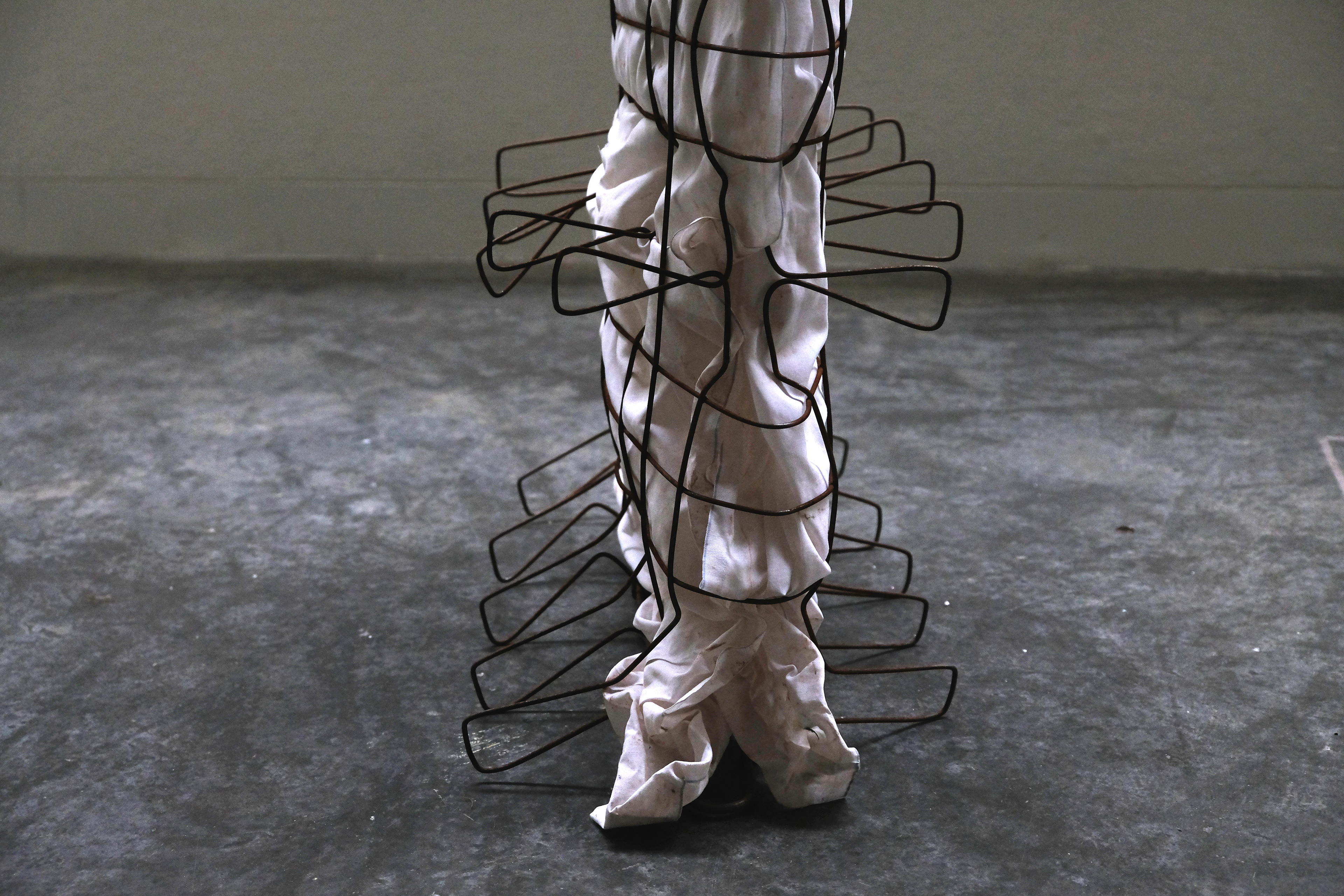 found steel, florescent light, shirt
